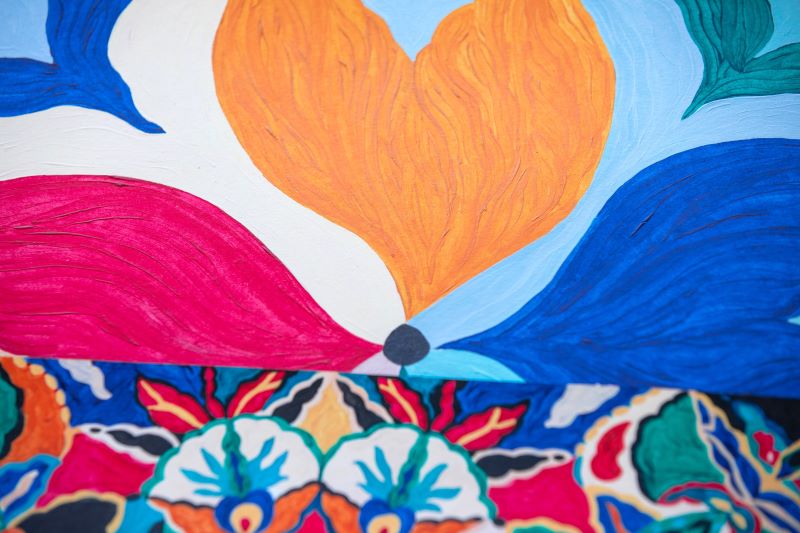 Je crois que la collection « Porteuses de Mondes » est celle dont je suis la plus fière en 5 années d’existence du projet artistique Ourse Blanche : elle est la plus aboutie, aussi bien au niveau du discours que je fais passer qu’au niveau visuel. J’ai aussi porté une attention forte à la cohérence entre les trois tableaux qui la composent; des échos de formes et de couleurs se sont construits entre eux.
